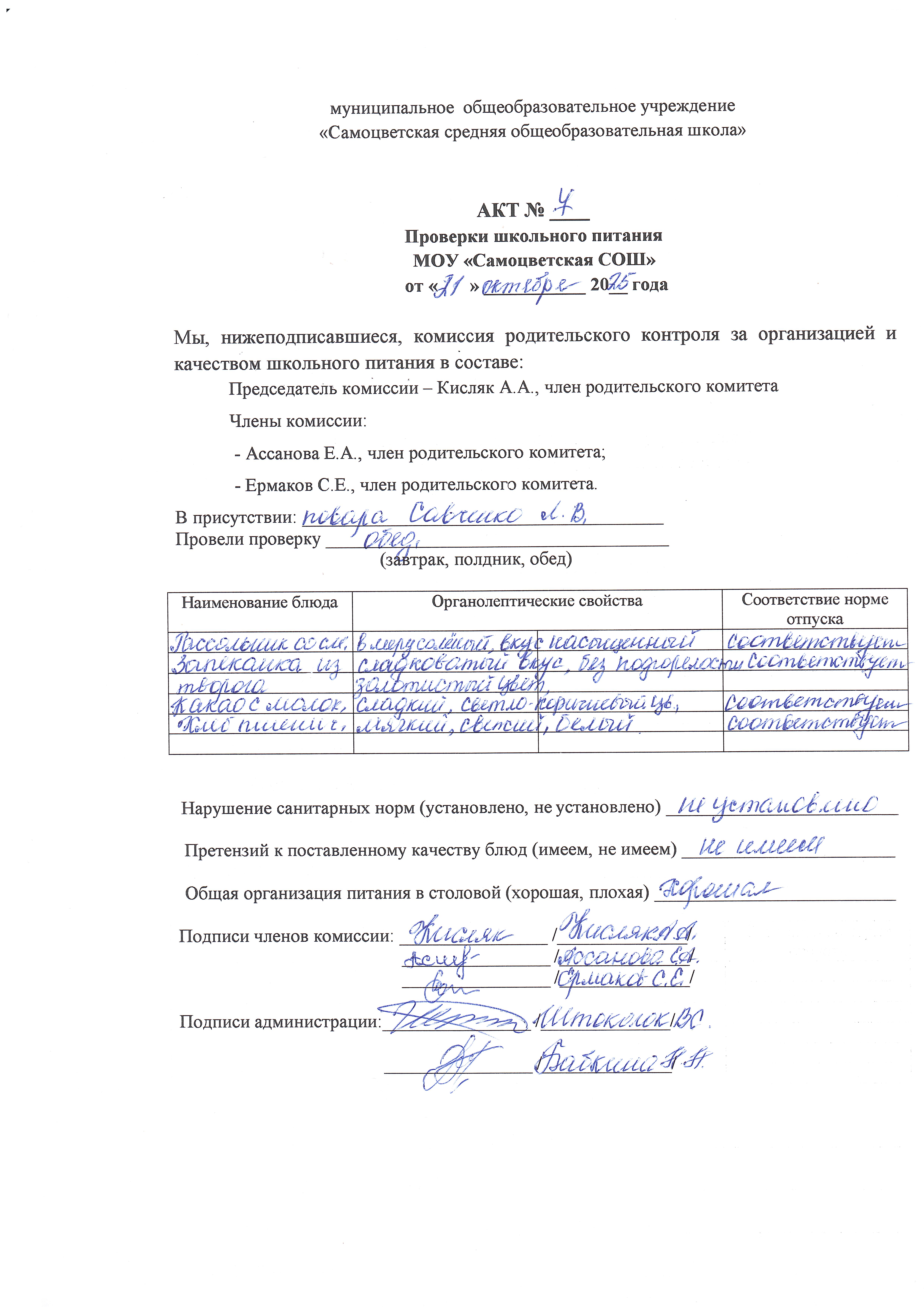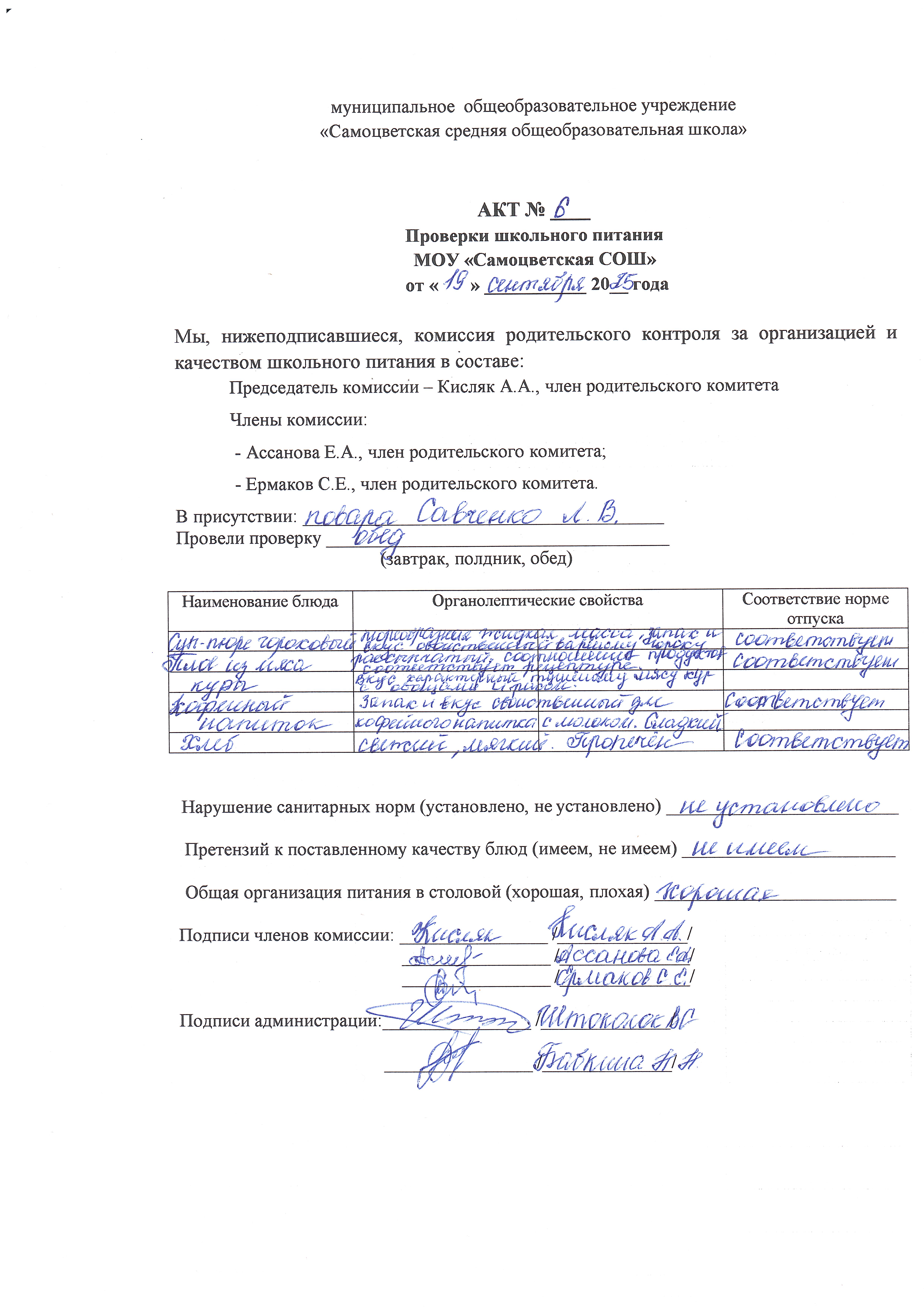 🏵 График питания в МОУ «Самоцветская СОШ»